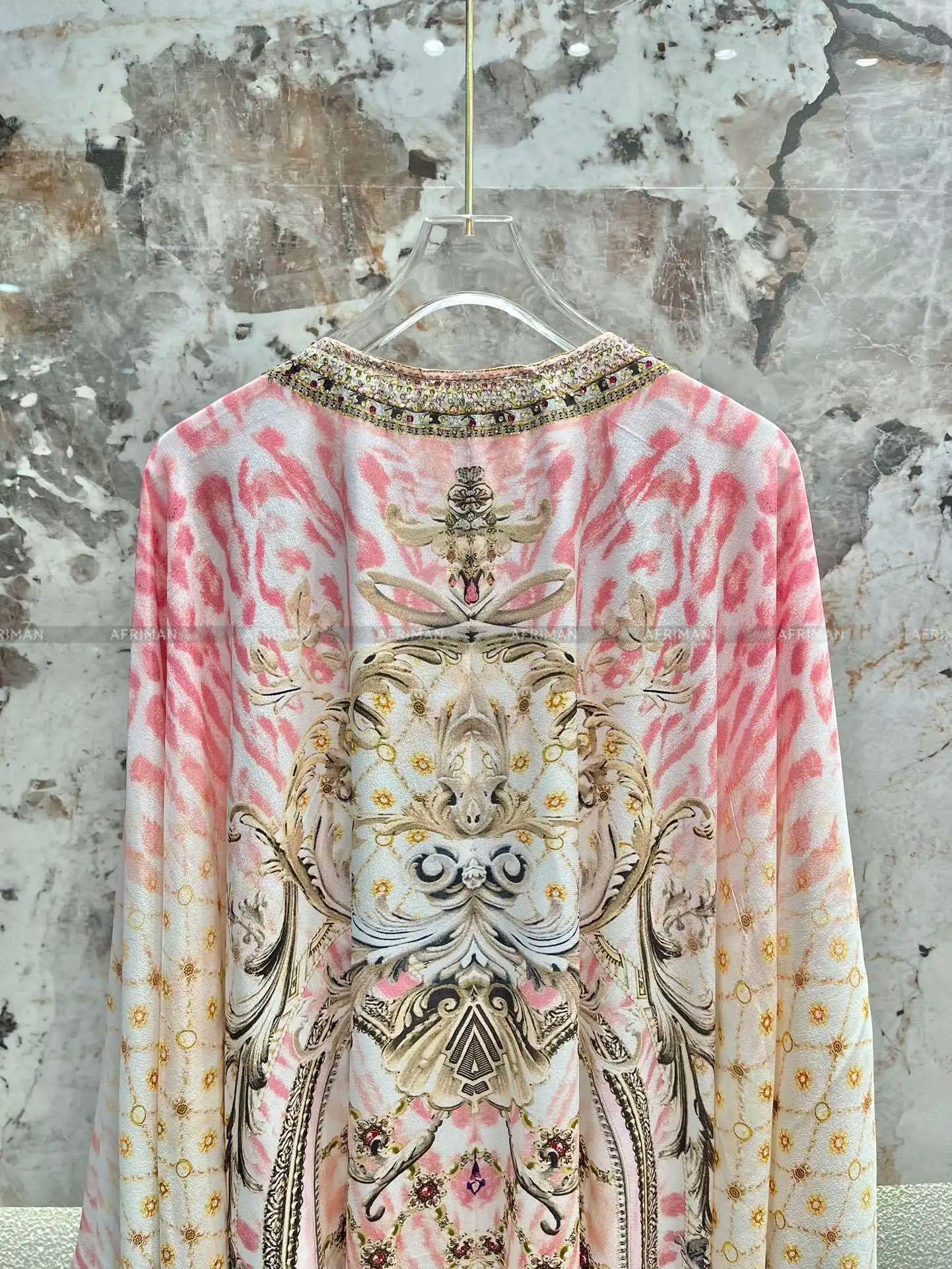 This exquisite designer dress effortlessly combines boldness and elegance, making it a standout piece for women who appreciate both style and comfort. Featuring a slight stretch for ease of movement, this dress is crafted from a luxurious blend of silk and cotton. The eye-catching leopard print gives it a fierce, fashion-forward edge, while the intricate beading along the V-neckline adds a touch of vintage sophistication.